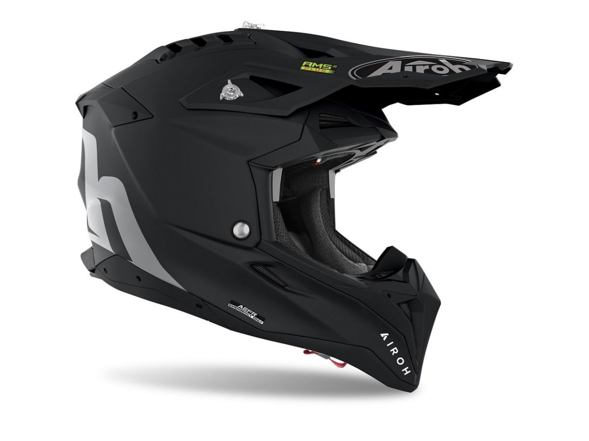 AIROH HELMET AVIATOR 3 | Material: | HPC High Performance Composite | Homologated šalmas compliant with European standard ECE 22-05 (Homologation valid only in Europe) | Leave everyone behind. Again. Winning once is not difficult, continuing to do so is. Aviator 3 raises the bar of the competition and redefines the standards of an offroad šalmas. | The outer shell, exclusively dedicated to the Primal graphic version is 3K Carbon-made. For all the other graphics emphasis is given to the noble Fiber Composite. | For all the range the shell is available in 4 different sizes, and was designed using the wind tunnel to best engineer both shapes and performances. | Great attention was concentrated into aerodynamics, to make the šalmas stable also at high speed, and the thermodynamics, to optimise thermoregulation. Airoh’s technological achievement is condensed in this new product, where the second-generation AMS2 (Airoh Multiaction Safety System), AEFR (Airoh Emergency Fast Release) and AMLS (Airoh Magnetic Lining System) systems are combined. | The 6 air vents and the spoilers with integrated extractors give Aviator 3 a komfortasable fit also when used in the most extreme conditions, just as the innovative AHS (Airoh Hydration System) integrated in the EPS. | FOR MORE INFORMATION PLEASE CONTACT US